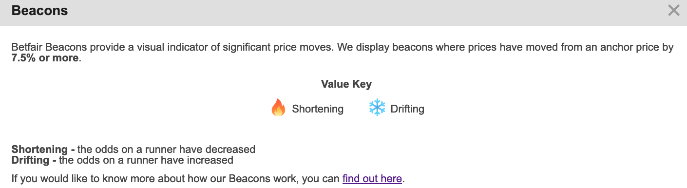 To illustrate the advantage of staying up to date on new features, we’ll have today’s Betting Bot targeted at a fairly recent addition to the Betfair website/UI, the ‘Betfair Price Beacons’.