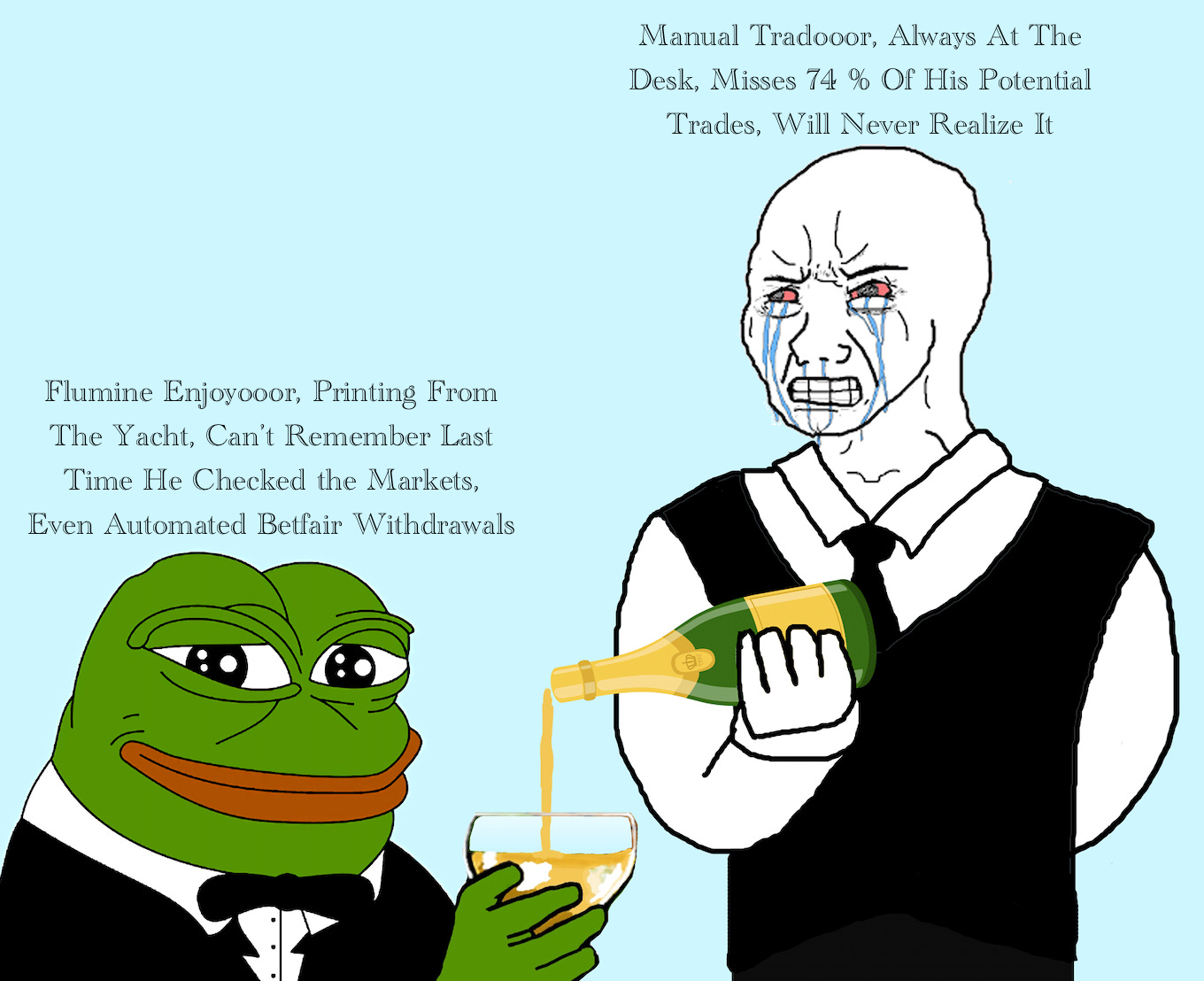 Note: We’re assuming you’re in it to *win it* [long-term] here. If you’re only going to place a trade or two on rare one-time events it of course makes no sense to do it programmatically.